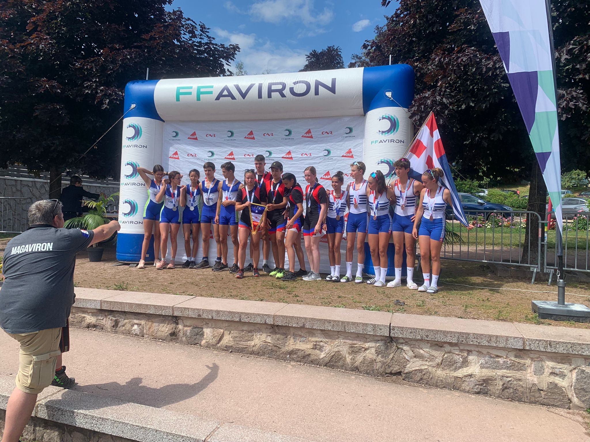 Cela faisait 30 ans que le RSCC Aviron l’attendait!!! Ils étaient attendus ce week end et ils ont répondu présents. Et c’est pour conclure une saison 2022 particulièrement incroyable que nos jeunes Minimes (J14) sont devenus CHAMPIONS DE FRANCE en 4 de couple mixte sur le lac de Gérardmer. Avec un temps canon de 3’35, ce jeune équipage composé de 2 débutants de l’année et un rameur J13 gagne avec une large longueur de bateau sur leurs concurrents. Une finale qui a failli ne pas se courir après la casse d’un aviron lors de l’échauffement pour la demi finale (un grand merci à Romane pour sa réactivité a trouver la paire de rechange!). Mais il en fallait plus pour déstabiliser cette équipe qui a su parfaitement gérer son Championnat en leader. Un immense BRAVO à nos champions et nous leur souhaitons un bon repos estival bien mérité!!!